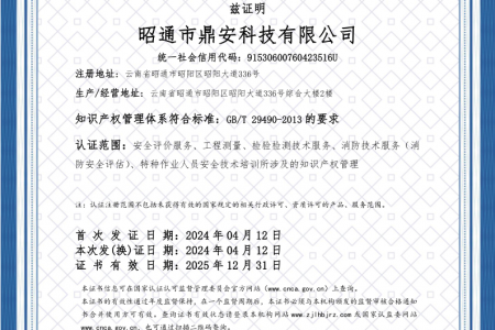2003年11月10日,昭通市鼎安科技有限公司成立,初始主要從事第三方安全工程技術(shù)服務(wù),經(jīng)多年運(yùn)營(yíng),發(fā)展為多專業(yè)綜合科技平臺(tái),為社會(huì)提供多種專業(yè)技術(shù)服務(wù)工作。 現(xiàn)公司注冊(cè)資金為1200萬(wàn)元,公司法定代表人:毛衛(wèi)旭。公司主要業(yè)務(wù):安全評(píng)價(jià)、安全標(biāo)準(zhǔn)化評(píng)審、安全工程技術(shù)服務(wù);環(huán)境監(jiān)測(cè)、職業(yè)衛(wèi)生檢測(cè)、檢驗(yàn);法律訴訟及非訴訟服務(wù);司法鑒定、固定資產(chǎn)投資項(xiàng)目節(jié)能服務(wù);工程咨詢;工程測(cè)量測(cè)繪;安全教育培訓(xùn)等。是安全生產(chǎn)服務(wù)、安全教育培訓(xùn)機(jī)構(gòu),也是環(huán)境監(jiān)測(cè)和職業(yè)衛(wèi)生服務(wù)機(jī)構(gòu),同時(shí)也是綜合的檢測(cè)檢驗(yàn)、綜合科技平臺(tái)服務(wù)機(jī)構(gòu)。多年來(lái)為公、檢、法、司、軍、警、海關(guān)、仲裁、安監(jiān)、工礦商貿(mào)企業(yè)、社會(huì)團(tuán)體及個(gè)人提供多專業(yè)技術(shù)服務(wù)。